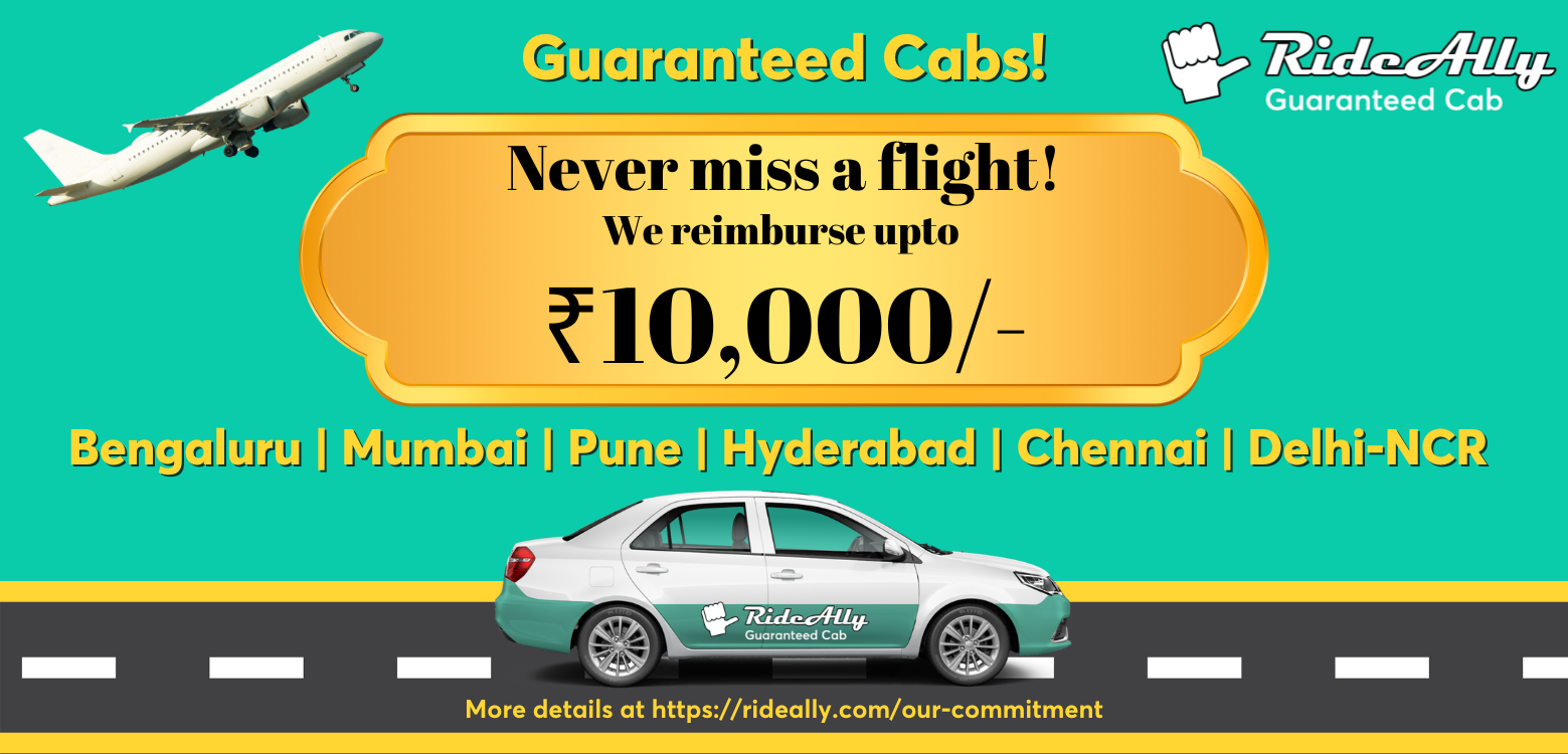 - RideAlly will do everything possible at its discretion to ensure that the customer does not miss the flight on account of delays under its control - ie. Vehicle allocation, cab reporting on time.